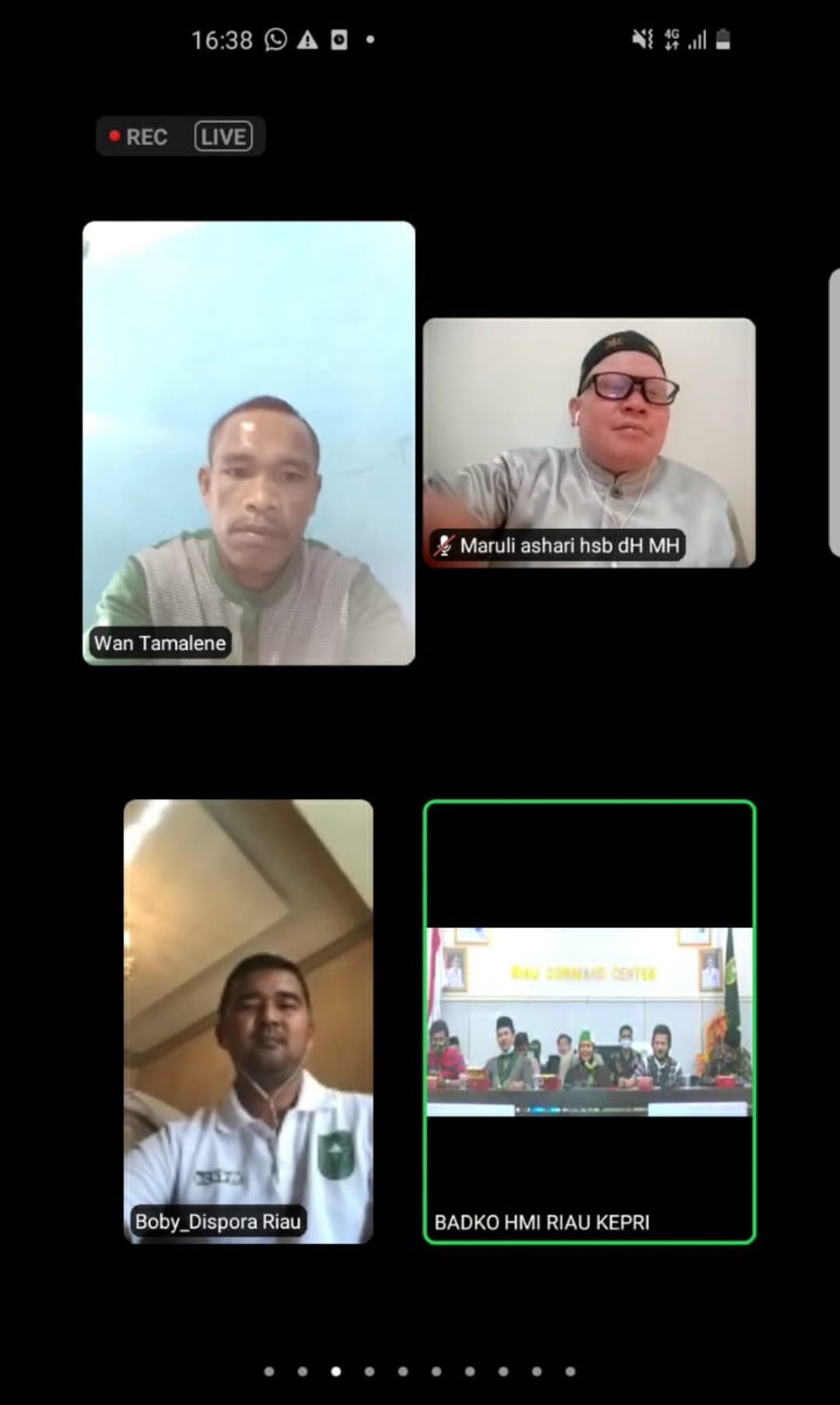 http://Teleskopnews.com Pekanbaru – Badan Koordinasi Himpunan Mahasiswa Islam Riau-Kepulauan Riau melaksanakan peringatan Maulid Nabi Muhammad SAW (12 Rabiul Awal 1442) bertepatan Hari Sumpah Pemuda (28/10/20) dengan Tema: Nabi Muhammad SAW sebagai Teladan bagi Pemuda untuk Negeri yang Bermarwah. Dalam Agenda yang digelar secara virtual (Zoom Meeting) berpusat di Riau Command Center (RCC) perkantoran Gubernur Riau pada selasa, 10/11/2020.