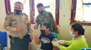 Lanjutnya, “mari kawan-kawan untuk ikut divaksin, Vaksin ok,” tegasnya sambil mengangkat tangan sebelah kanan ke atas.