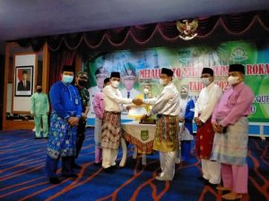 Piala Bergilir MTQ ke XXII ini diserahkan langsung Staf Ahli Bupati Suharman S.Pi MM kepada Camat Tandun M. Rodi S.Sos.
