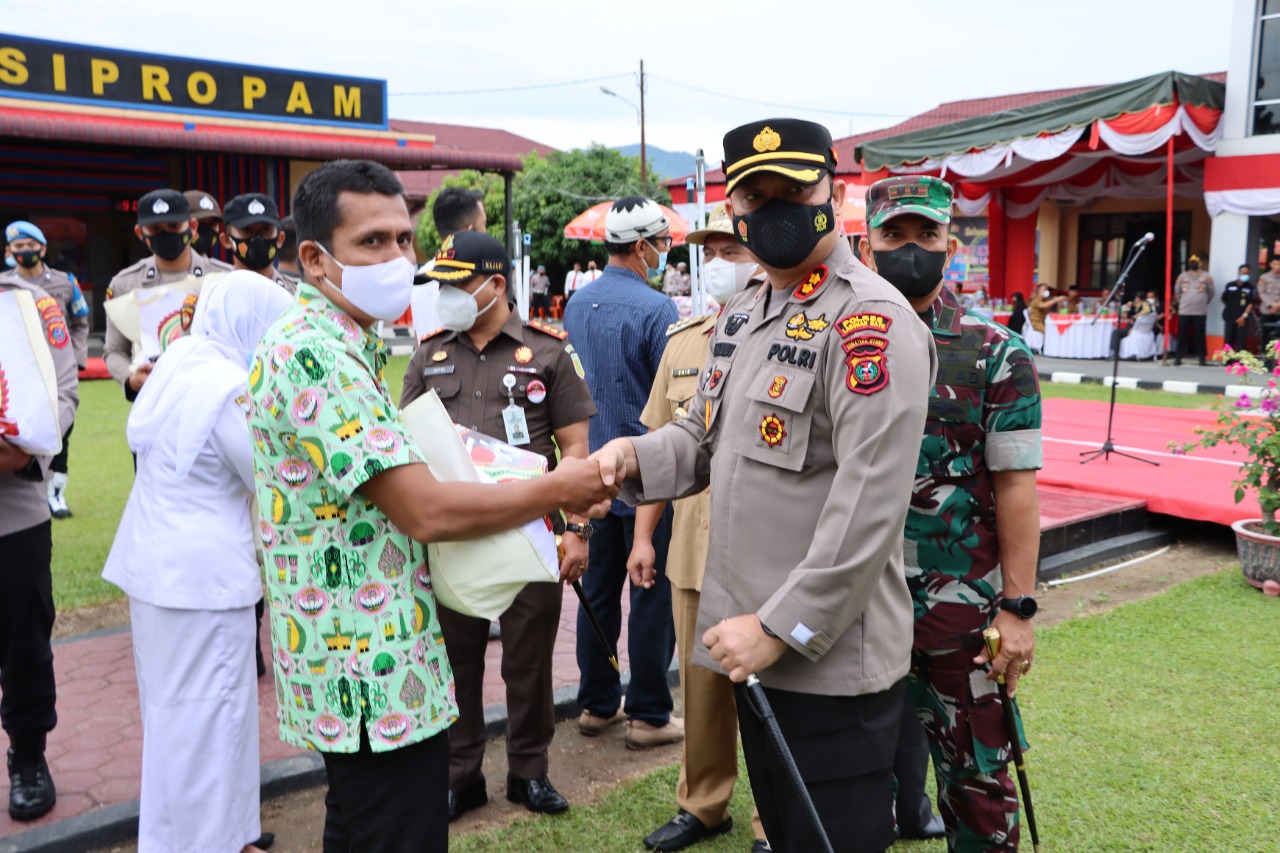 Polres Labuhanbatu Gelar Apel Penyerahan Paket Bhakti Sosial Dan Bantuan Dalam Rangka Hari Bhayangkara Ke-76