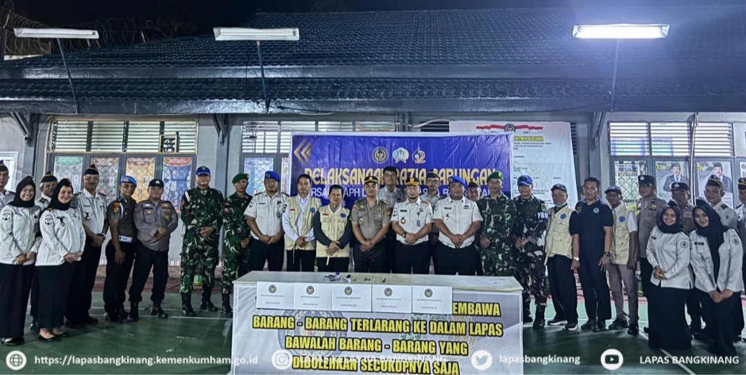 Selanjutnya, pada malam hari kegiatan dilanjutkan dengan razia gabungan yang melibatkan APH, yakni unsur TNI, Polri, dan BNK Kampar. Razia ini dipimpin langsung oleh Kepala Lembaga Pemasyarakatan (Kalapas) Kelas IIA Bangkinang, Alexander Lisman Putra. Turut hadir dalam kegiatan tersebut Kapolsek Bangkinang Kota, IPTU Dr. Eko Wahyu, beserta jajaran.