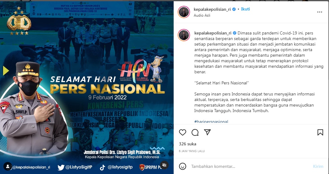 Teleskopnews.com – Kapolri Jenderal Listyo Sigit Prabowo menyampaikan selamat memperingati Hari Pers Nasional (HPN) tahun 2022. Menurutnya, insan media, terus hadir memberikan informasi meskipun…